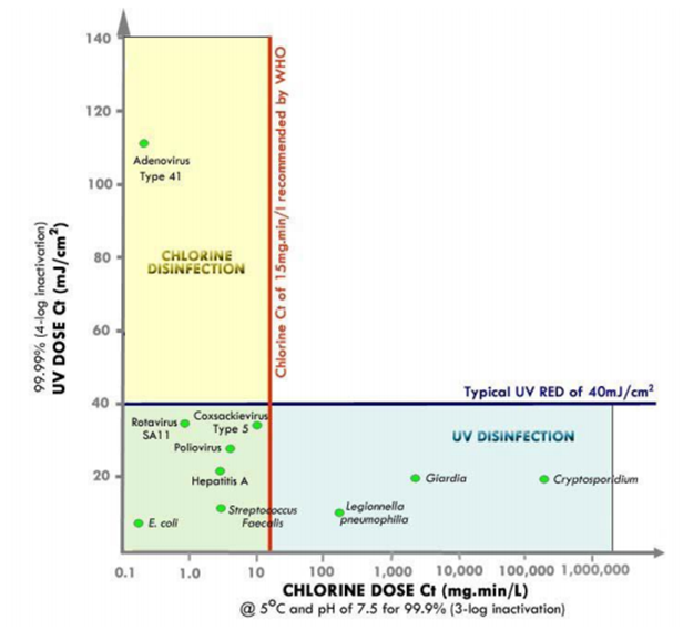 (2)  Per amplificare lo spettro della disinfezione, l'uso di UV è altamente raccomandato in combinazione con il dosaggio del cloro.